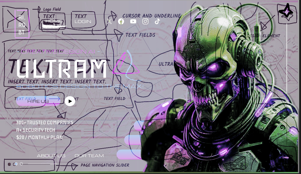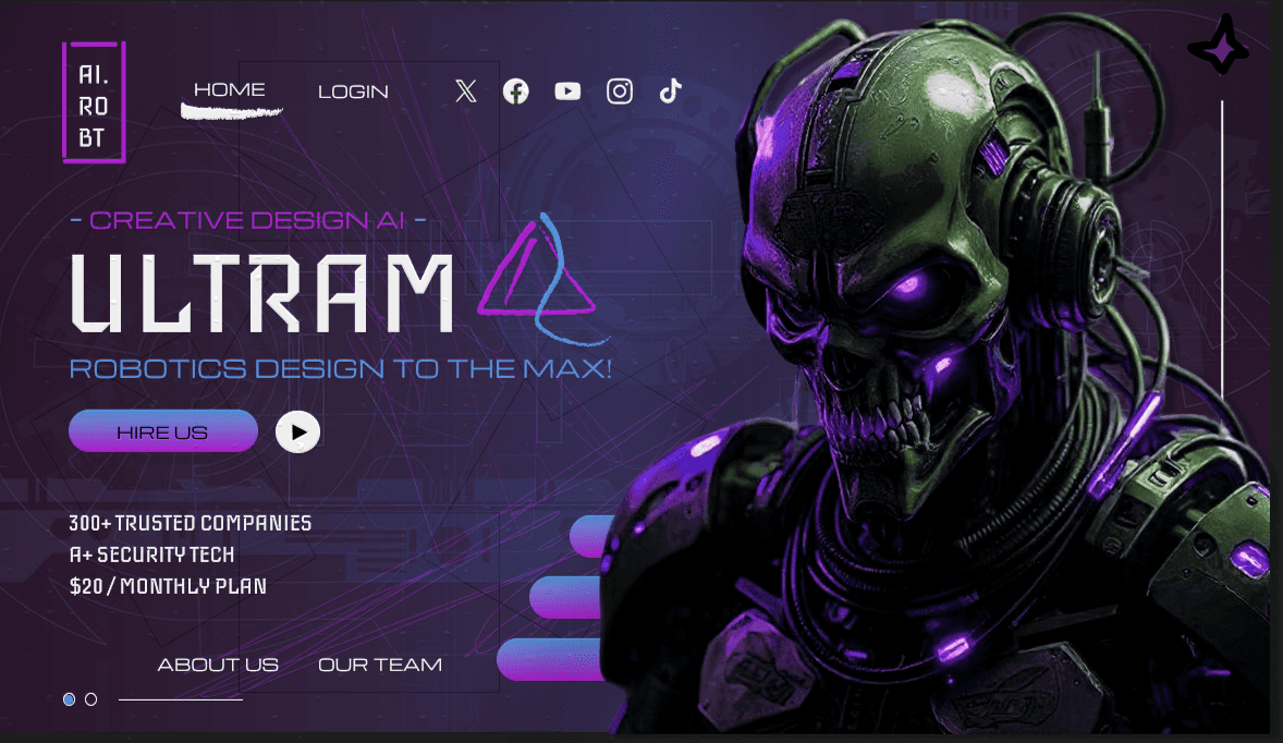 Ultram is a custom AI robot web page that specializes in providing robotic design services to industry tech giants.