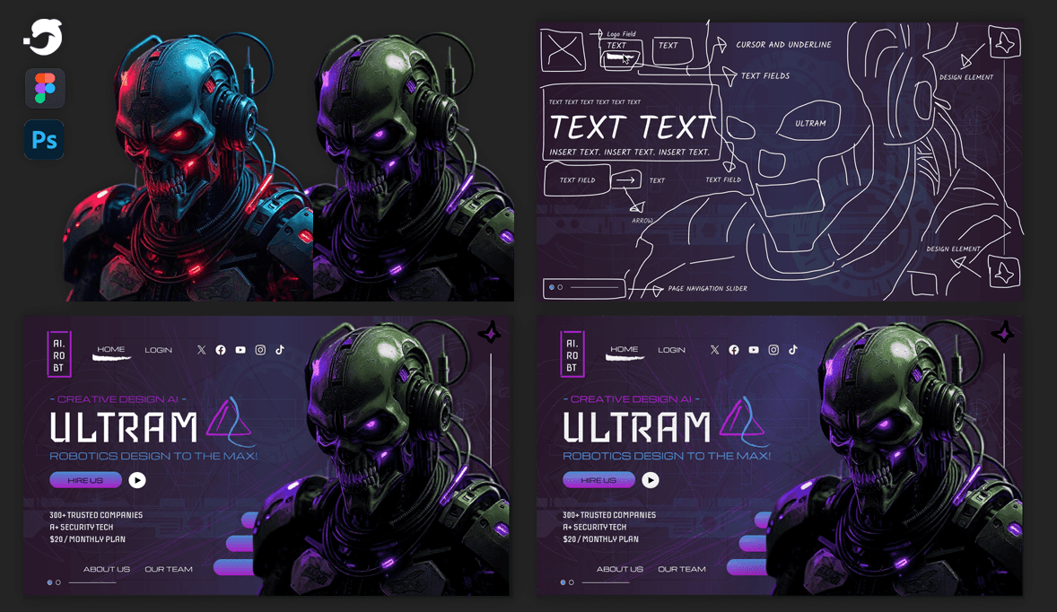 This is a custom web page design I created with Photoshop, Figma and Deep AI.
