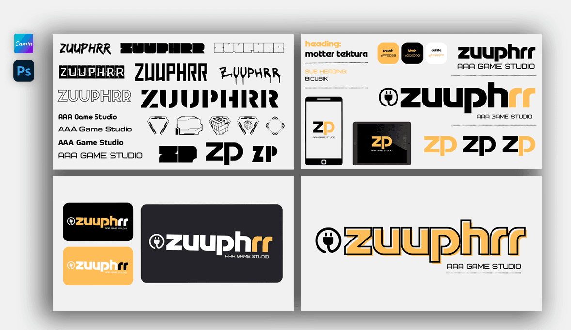 The thought process behind Zuuphrr was to create a fresh new brand for my made-up game company. I went through many variations, but was mainly wanting to go for a clean-cut, modern look and appeal. My inspirations drew from from Naughty Dog, Insomniac Games and PlayStation.
